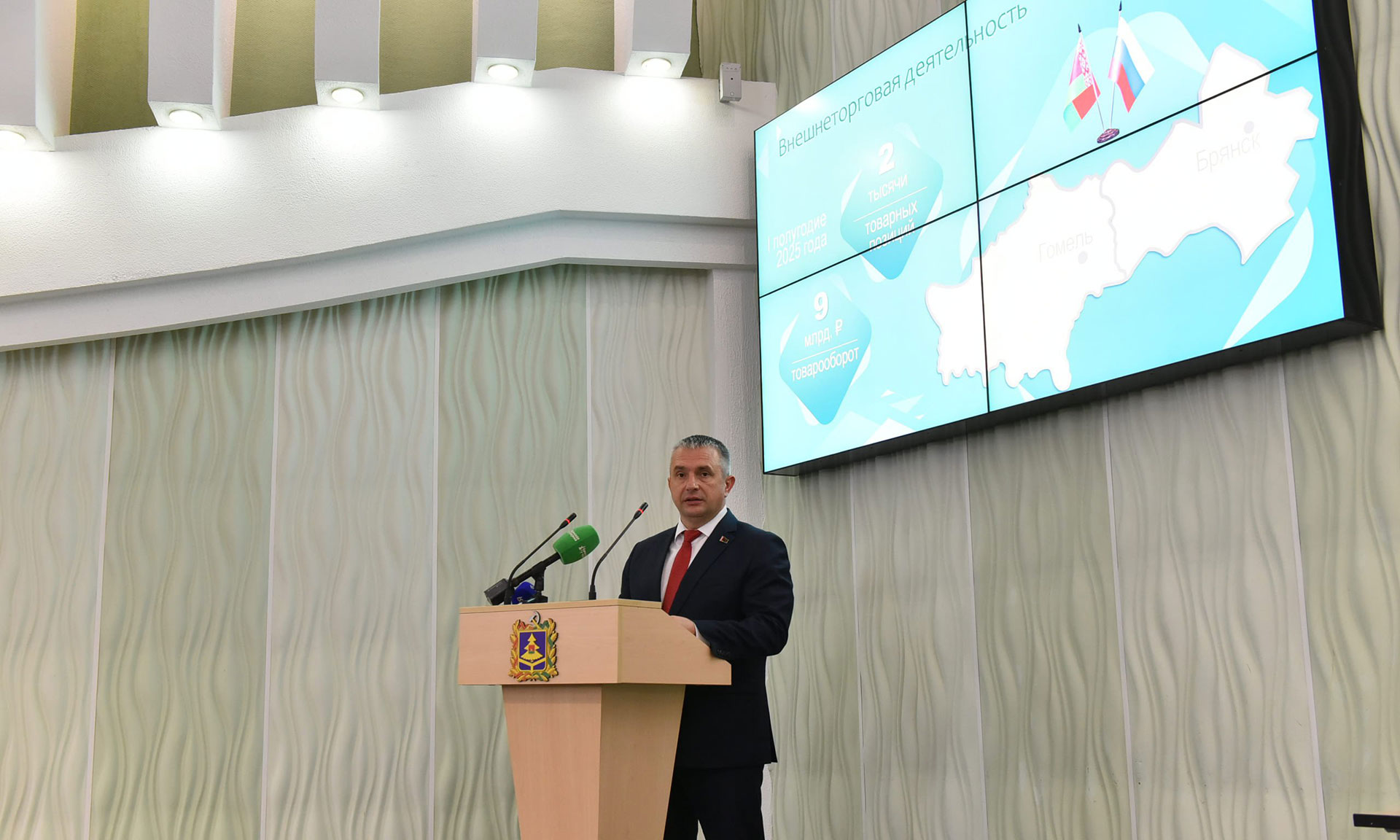 В общем товарообороте две тысячи товарных позиций на сумму 9 млрд рублей. За этими цифрами стоит каждодневный труд и доверие, проверенное временем. Наши отношения развиваются во всех сферах, от промышленности и строительства до образования, культуры и спорта. На российском рынке работают и совместные предприятия: Гомельский электромеханический завод и Брянский «Термотрон». Реализован масштабный проект по выпуску железнодорожной продукции для нужд нашего Союзного государства. Идет реализация совместных проектов, предприятия наращивают поставки оборудования и запчастей. Гомельские строители возводят в вашем городе новые комфортные дома. И сегодня мы документально оформили новые договоренности о строительстве многоэтажного жилого дома Мозырским домостроительным комбинатом. Этот и многие другие примеры наглядно демонстрируют, как наше плодотворное сотрудничество становится опорой для будущих отношений.