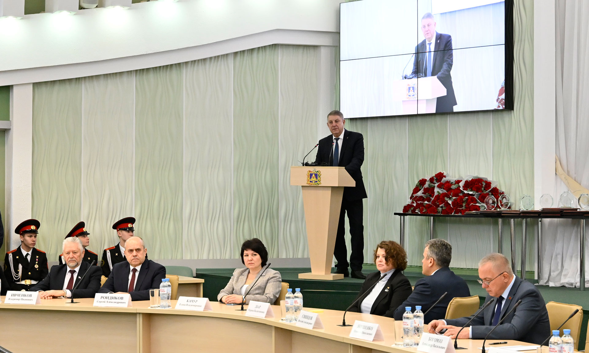 В торжественном мероприятии приняли участие Губернатор Брянской области Александр Богомаз, заместитель председателя Брянской областной Думы Николай Якушенко, сенатор Российской Федерации Вадим Деньгин, заместители Губернатора Брянской области, руководители города Брянска, руководители федеральных территориальных органов государственной власти Брянской области, депутаты Брянской областной Думы, руководители исполнительных органов власти, главы муниципальных образований Брянской области, предприниматели.