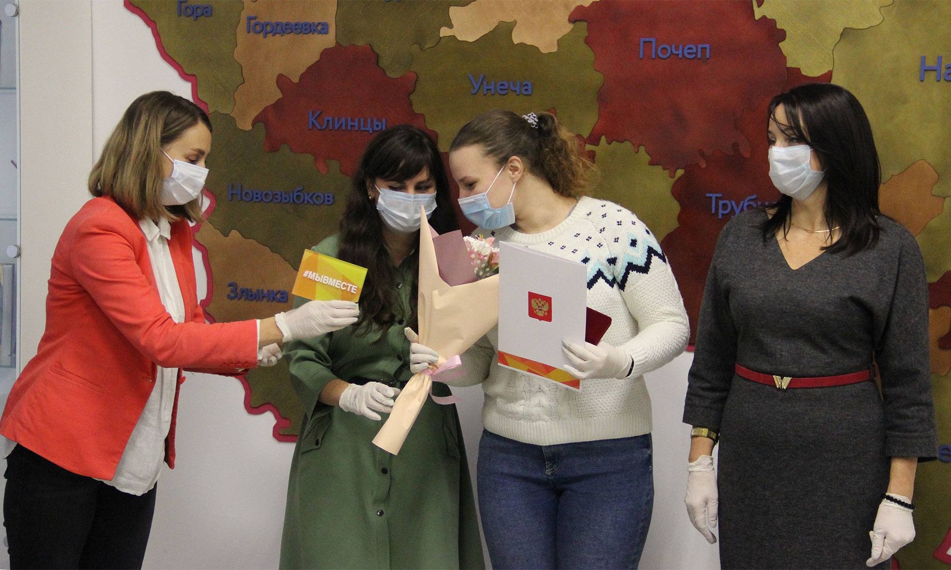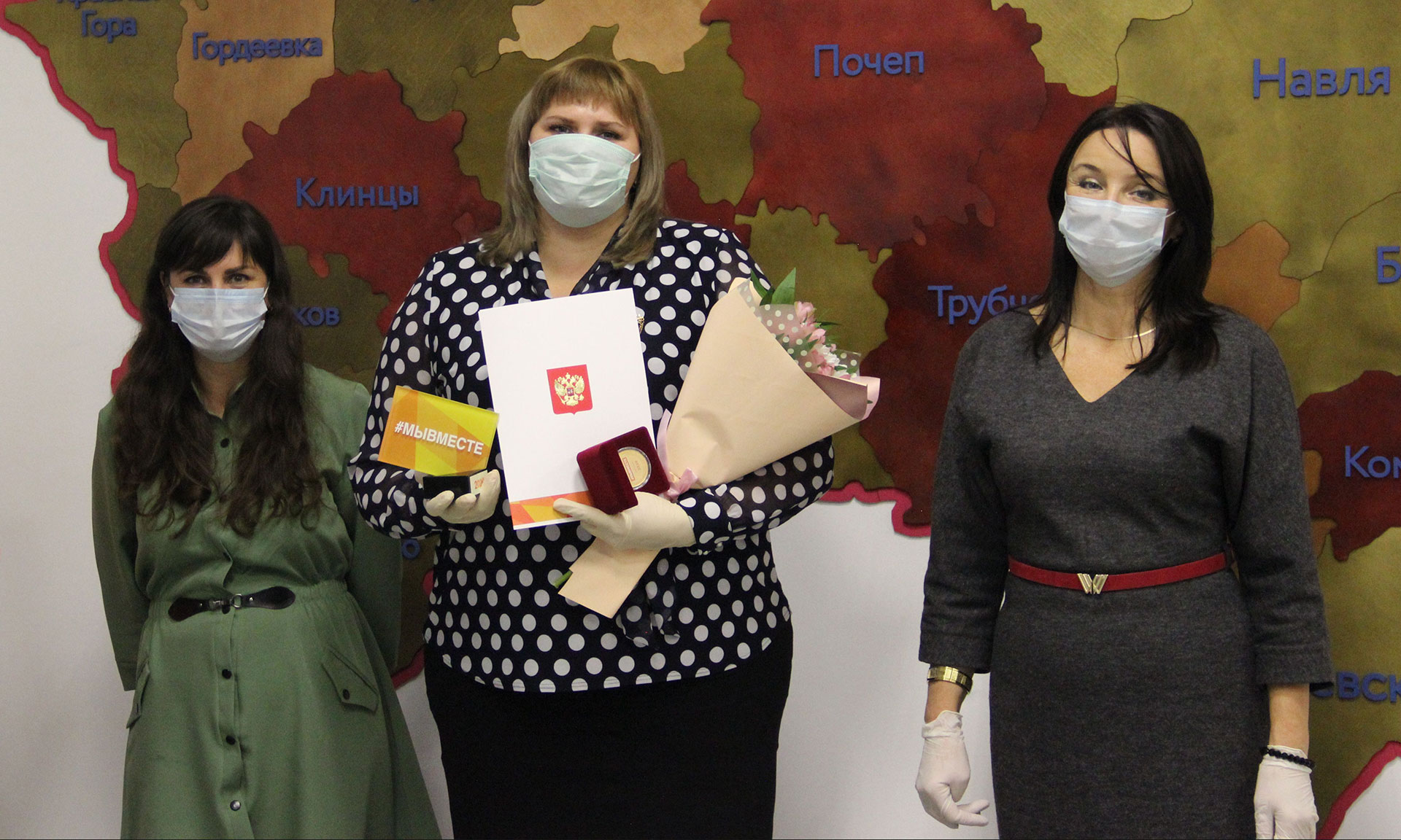 Брянским волонтерам вручили Грамоты Президента Российской Федерации Владимира Владимировича Путина к памятной медали «За бескорыстный вклад в организацию Общероссийской акции взаимопомощи «#МыВместе».