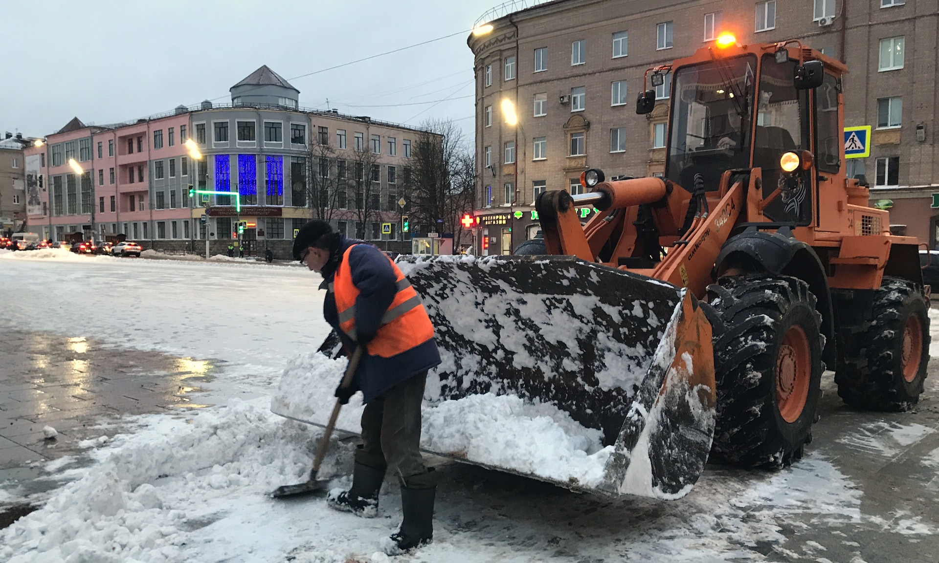 Также убираются пешеходные зоны и дворы домов. Особое внимание уделяется очистке тротуаров и остановок общественного транспорта, который продолжает курсировать по расписанию даже в сложных погодных условиях.